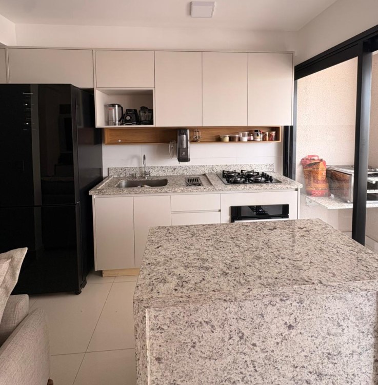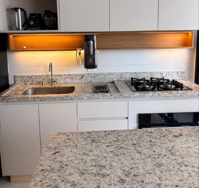• Ilha em granito integrada à sala (design moderno e funcional)