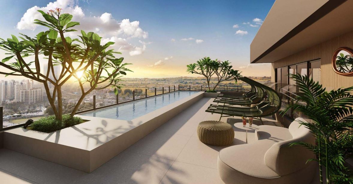 Complexo de piscinas com bangalôs e rooftop com vista panorâmica para o Setor Marista, criando uma experiência única de lazer.
